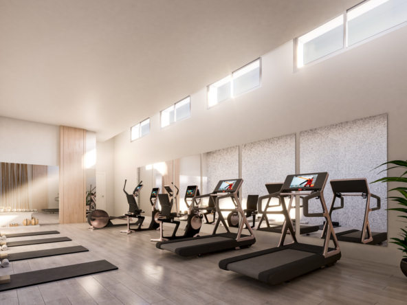 The outdoor communal areas include a communal swimming pool with saline chlorination, perimeter fencing and paved with Rosagres porcelain tiles. These areas are surrounded by large green areas that combine lawns and Mediterranean shrub gardens, creating a natural and welcoming environment.