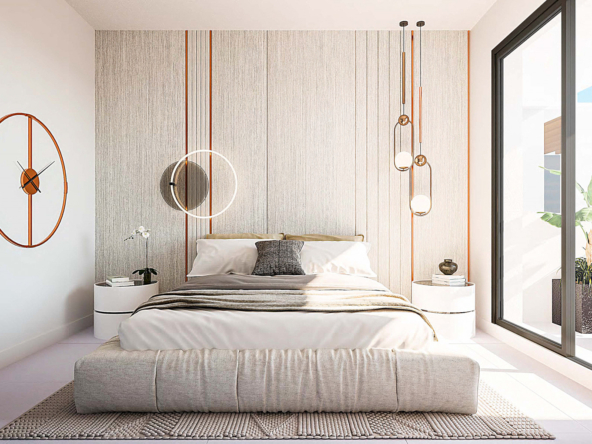 The slope of the land allows for terraced living, where the large terraces stand out with their glass balustrades that seem to merge with the sea, maximising the views and taking advantage of the spectacular sunlight. The townhouse has underfloor heating with water throughout the house and electric heating in bathrooms and toilets. This system guarantees an even distribution of heat, increasing the sensation of thermal comfort.