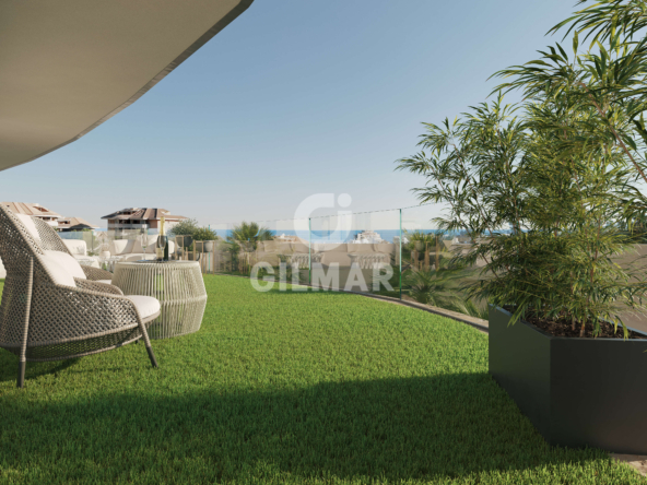 On the ground floor, you’ll find a spacious living-dining area with an open-plan kitchen, ideal for family gatherings and social events. The kitchen is fully equipped with state-of-the-art appliances and high-end finishes. From the living room, step out onto a magnificent 20 m² terrace, where you can enjoy breathtaking views of the Mediterranean Sea and the surrounding natural beauty.