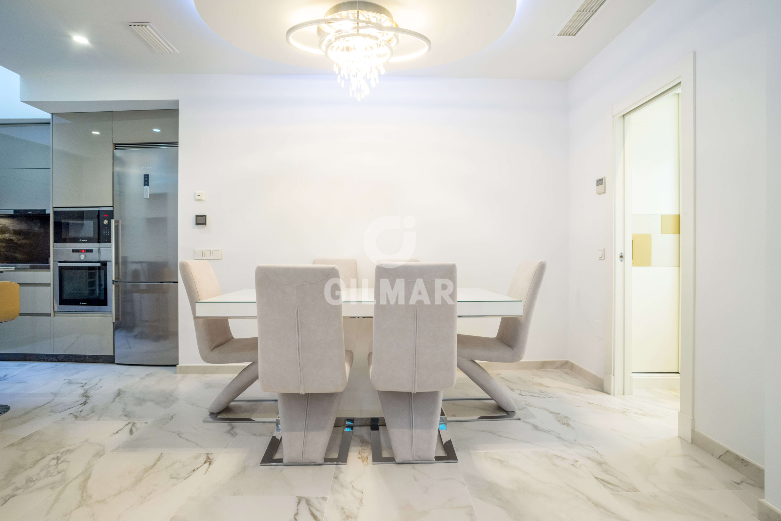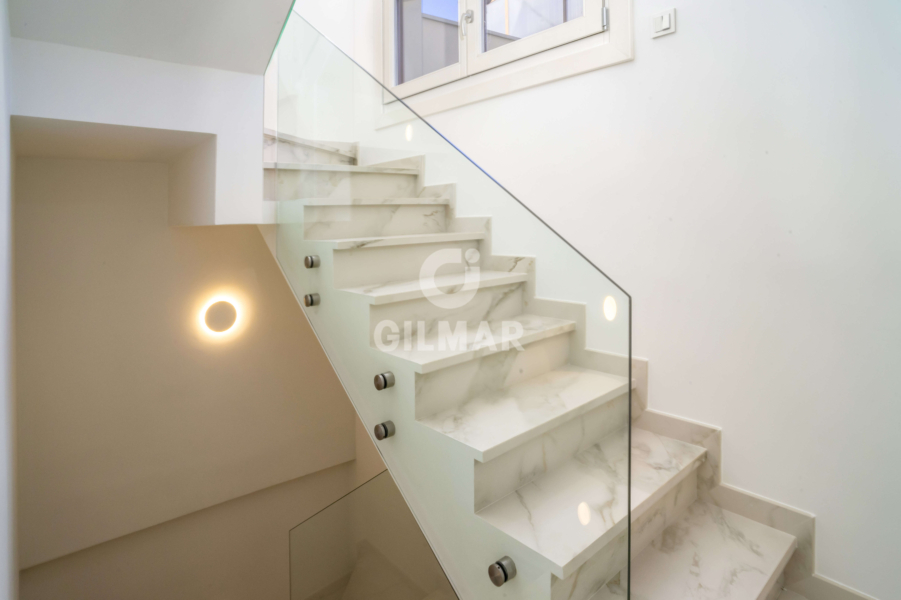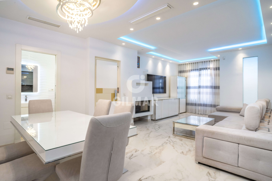 The house is spread over three floors. On the main floor, the spacious living room with an open-plan kitchen creates a bright and airy atmosphere, perfect for enjoying time with family and friends. It features three bedrooms, two full bathrooms, and a guest toilet, all designed with an elegant and welcoming style. Additionally, one of the bedrooms has access to a large private terrace, ideal for relaxing and enjoying the exceptional Costa del Sol climate.