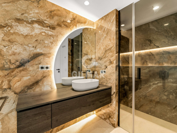 Delivered fully furnished with designer furniture, the property is ready for immediate occupancy. Three large south-facing terraces provide stunning sea views, creating the perfect spaces to enjoy the Mediterranean climate year-round.