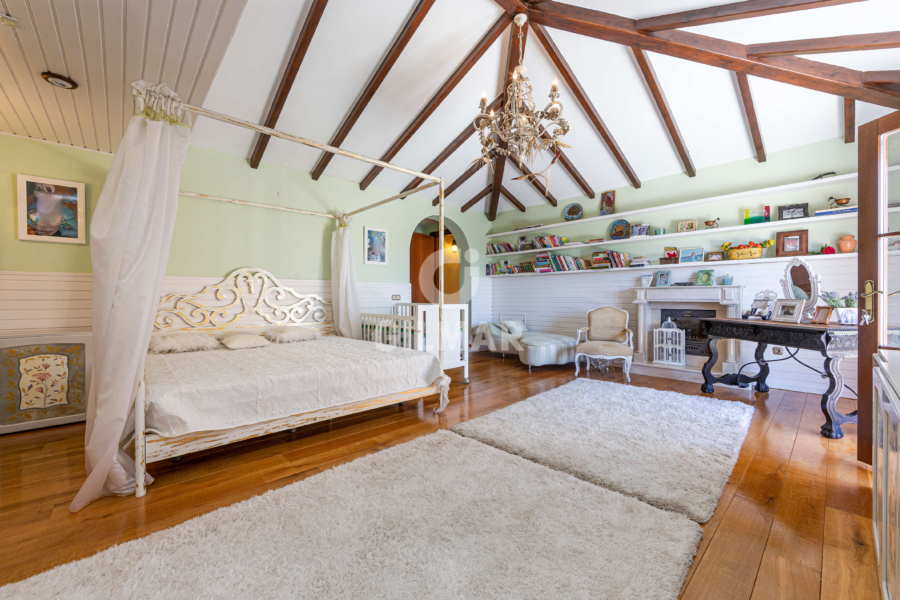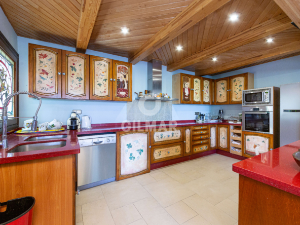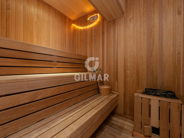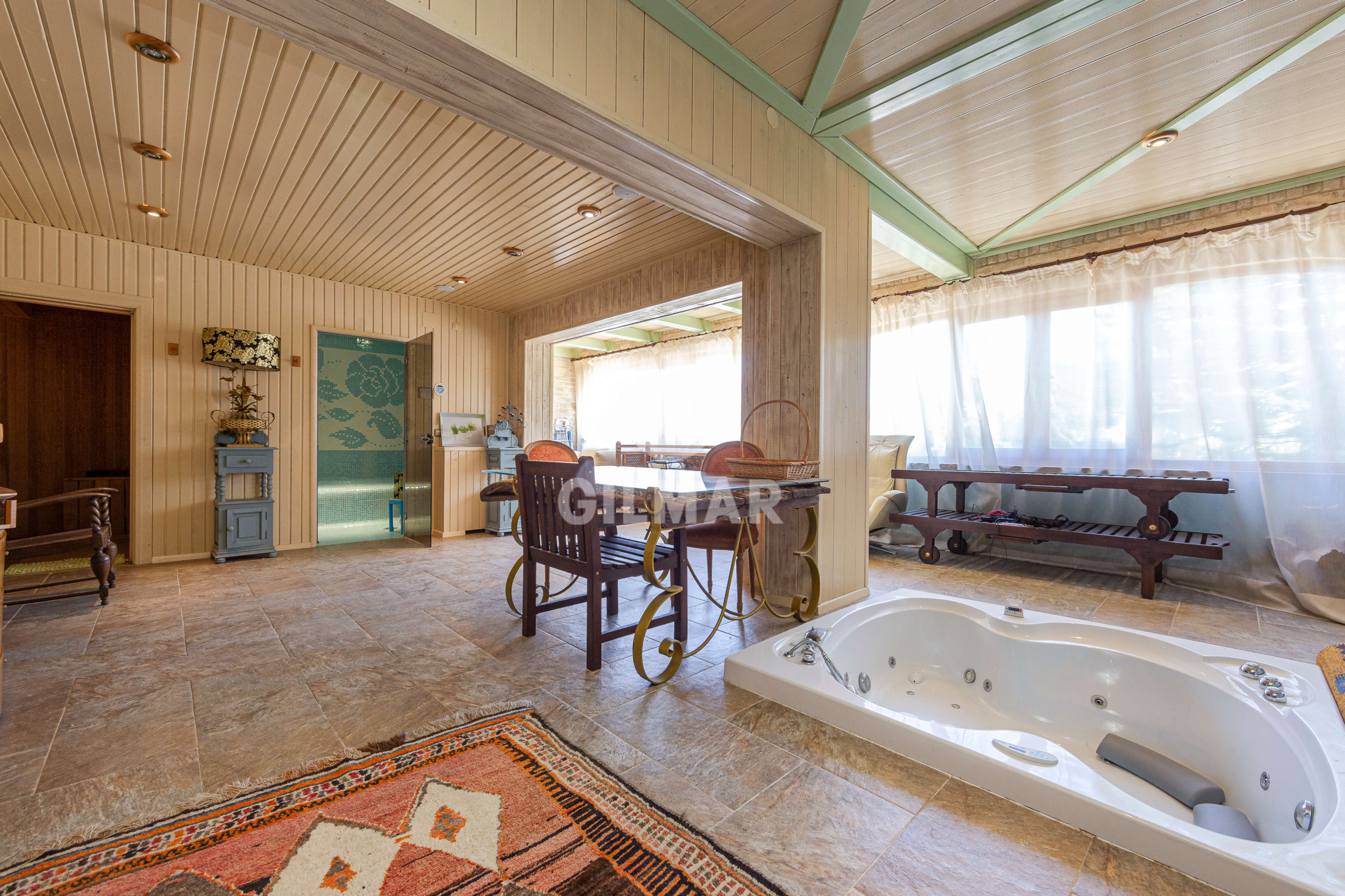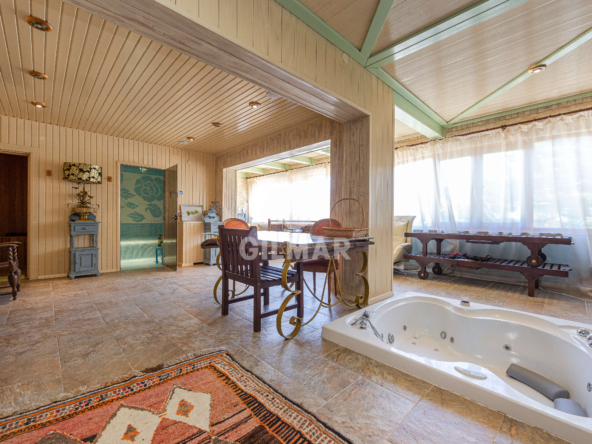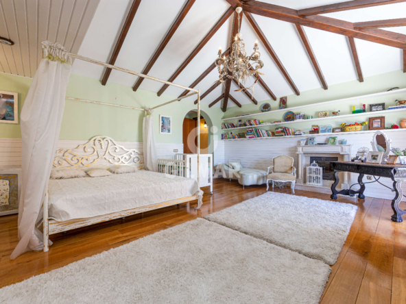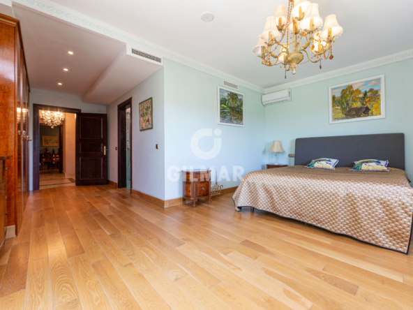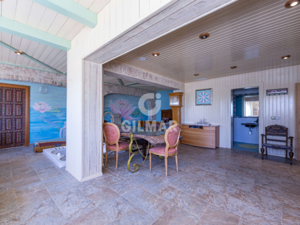 Set on a generous plot with a private pool, guest house, and lush gardens, the villa’s main level includes a gallery-style living room, bright dining area, fully equipped kitchen with access to a patio and barbecue area, four bedrooms, several bathrooms, a sauna, and a garage. Upstairs, the master suite boasts a walk-in closet, en-suite bathroom, guest toilet, and a large private terrace with breathtaking sea views.