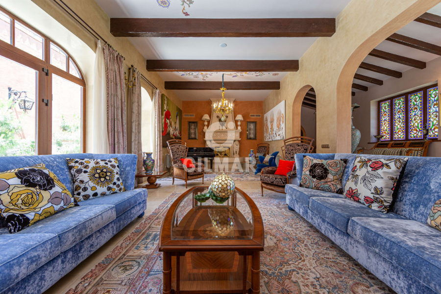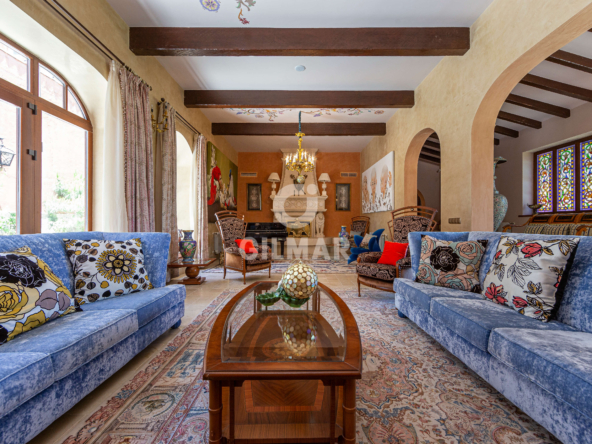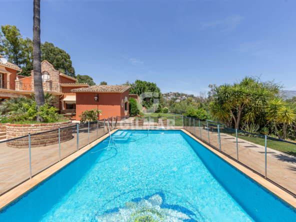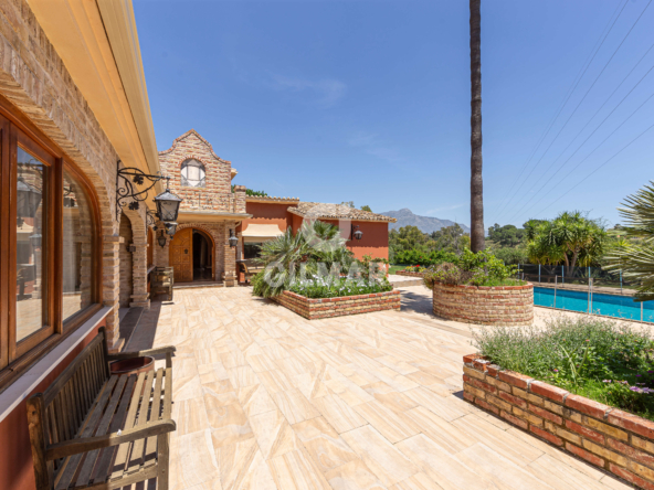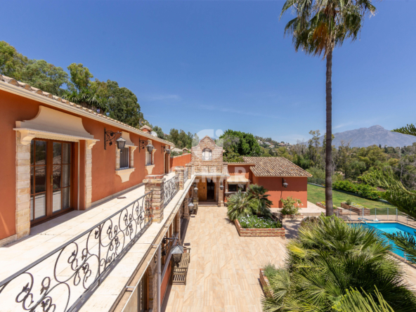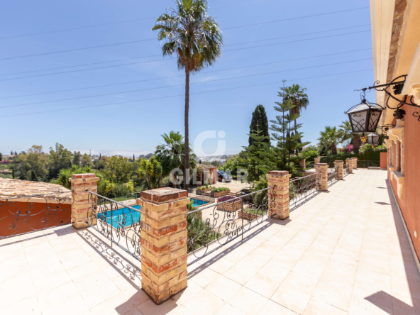 Exclusive Andalusian-style villa in Benahavís, fully rebuilt in 2010 and recently repainted, with a renovated kitchen. Nestled in a peaceful community surrounded by nature, it offers complete privacy and panoramic views over Nueva Andalucía valley, Puerto Banús, and the Mediterranean, while being just minutes from La Quinta, San Pedro, and Guadalmina.