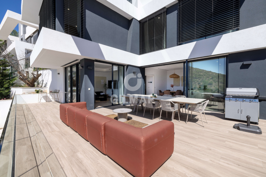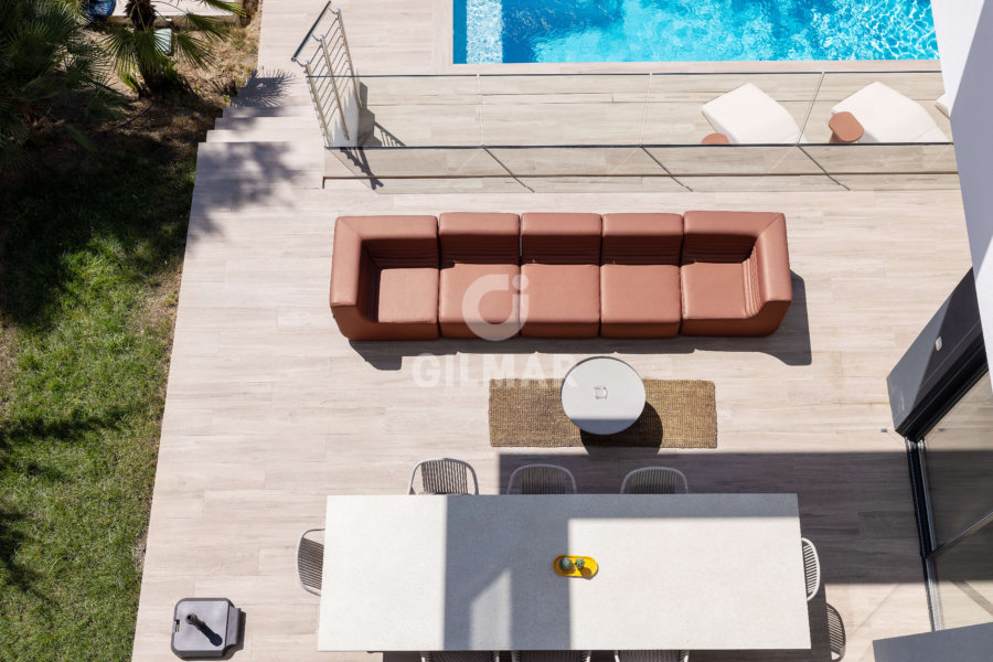 The property has 358 square meters of built area. This is an incredible new villa in Pinares de San Antón with 7 bedrooms and 7 bathrooms. The ground floor is the main floor and features a living room with an open-plan kitchen and a guest bathroom. The first floor has 3 bedrooms and 2 bathrooms.