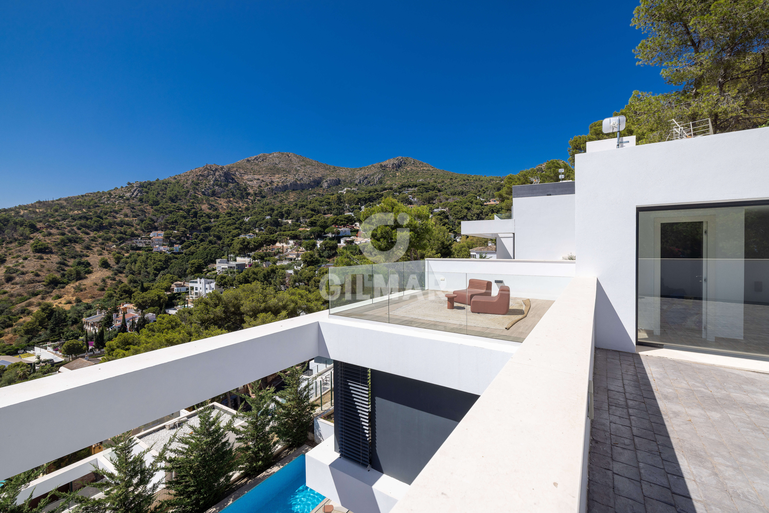 Gilmar Consulting Real Estate is selling this exclusive villa located in the prestigious Pinares de San Antón neighborhood, a privileged location with a rich and elegant history in Málaga. Founded in the 1960s, this neighborhood has witnessed the city's evolution and has remained one of the most coveted enclaves, dominating the city due to its location in the heart of Monte San Antón.