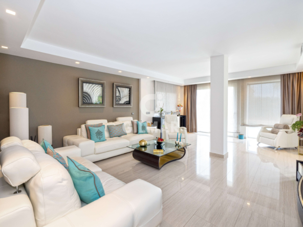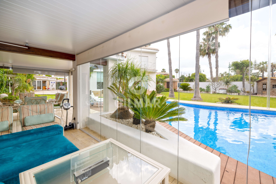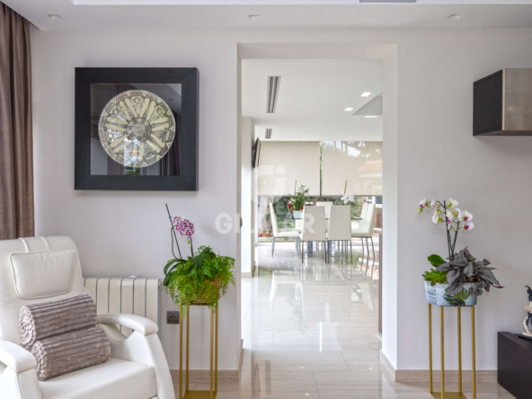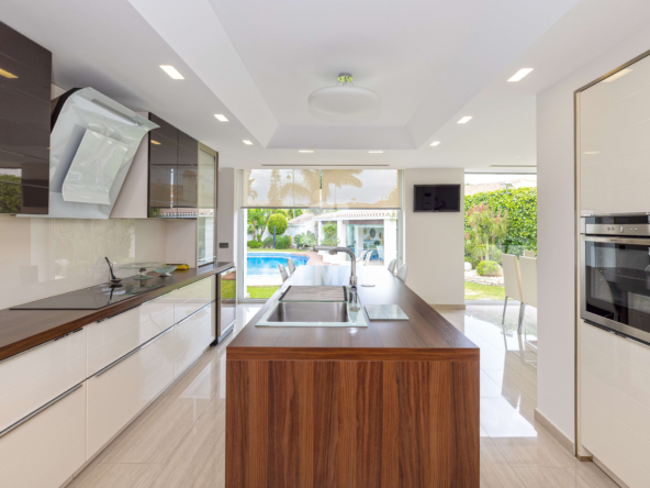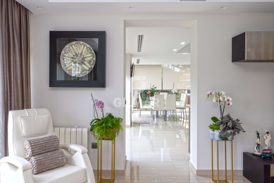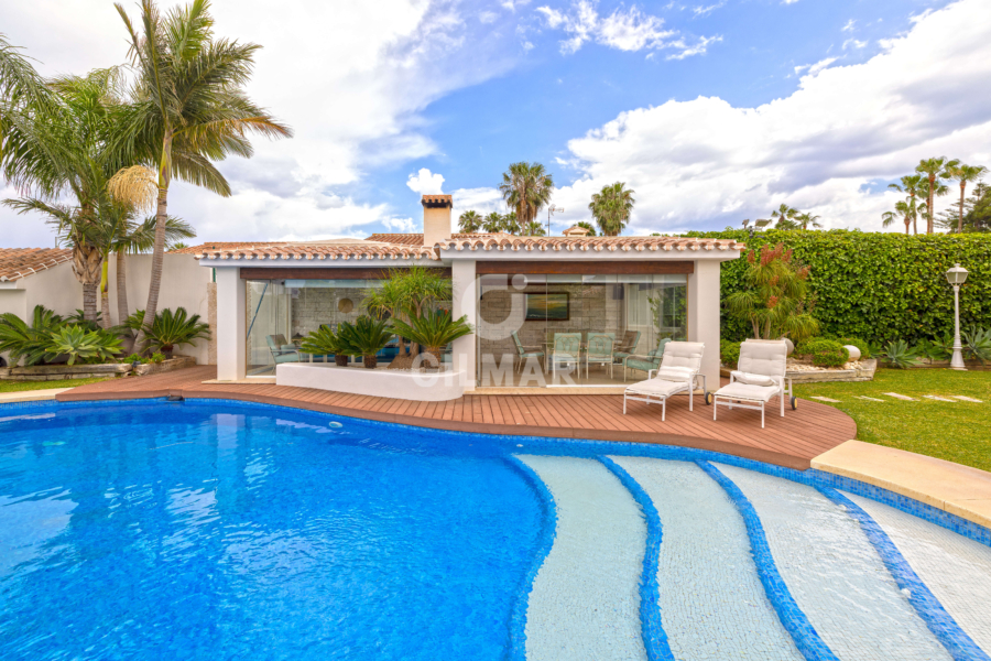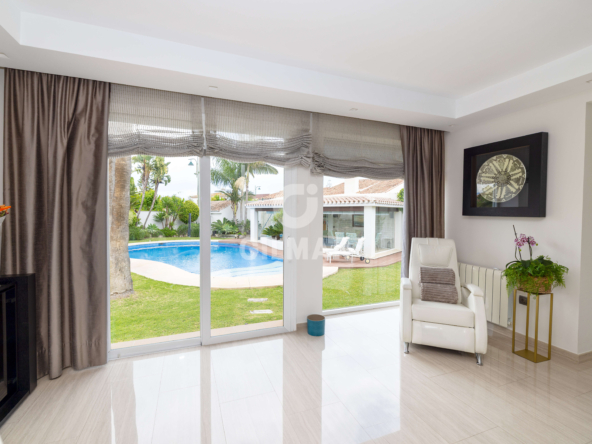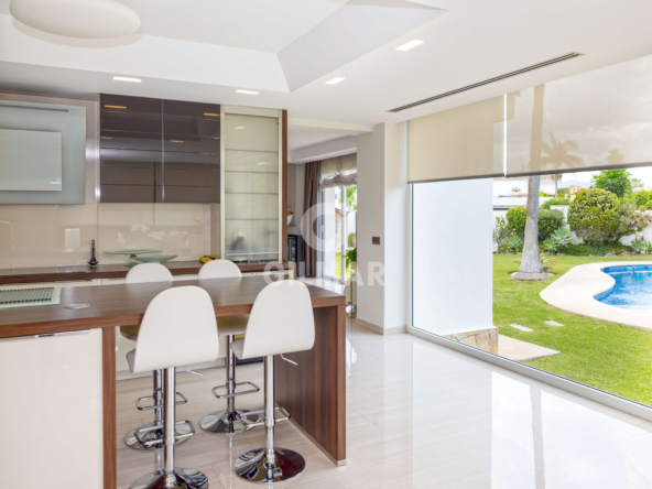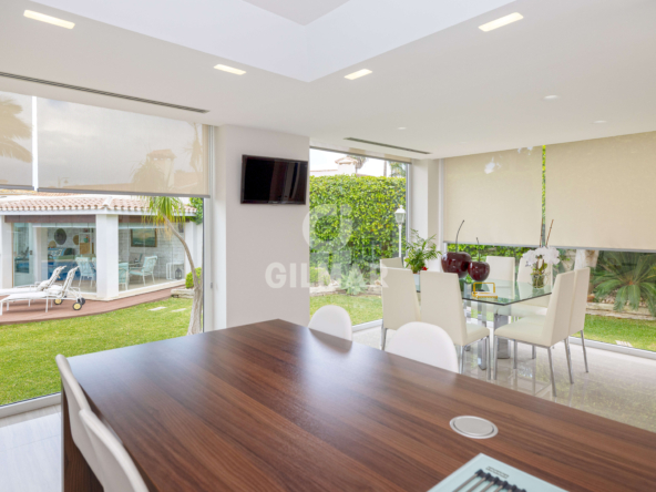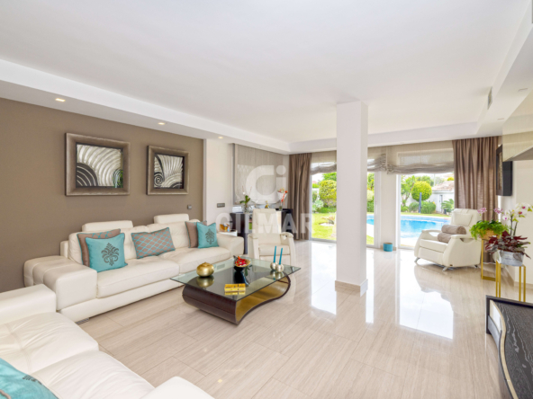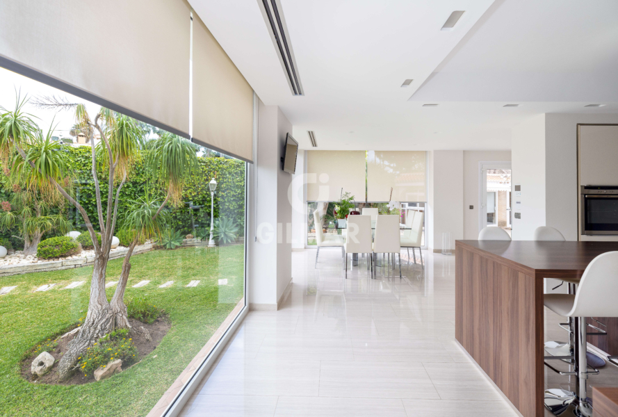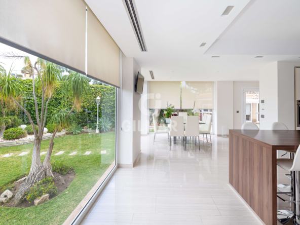The outdoor area of this villa is designed for absolute enjoyment: a living room with a summer kitchen, chill out area, spacious and well-tended gardens and a large swimming pool that invites you to rest and disconnect.