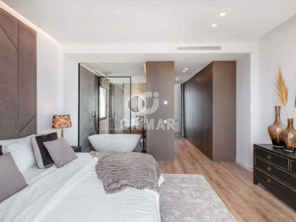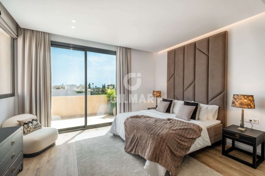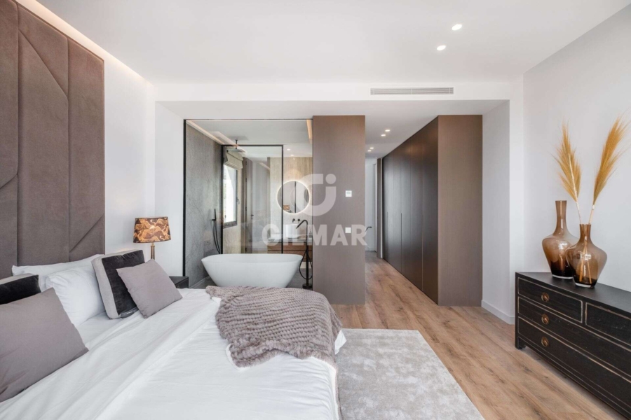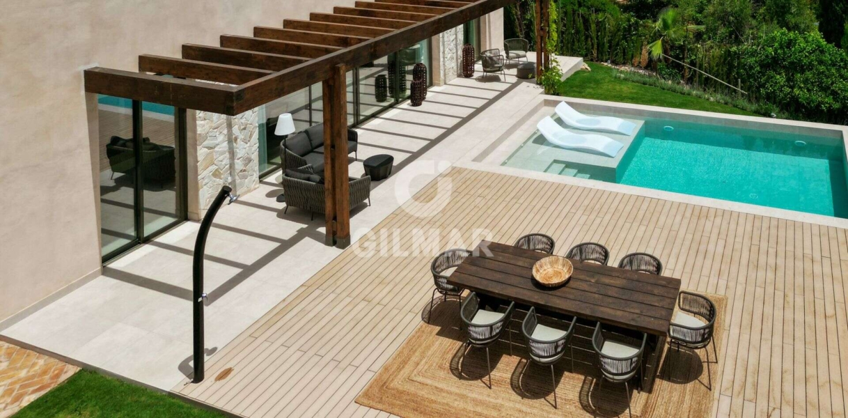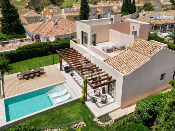 Sophisticated and elegant villa in Paraiso Alto, Benahavis, with a beautiful design inspired by Mediterranean architecture. This property combines indoor and outdoor living with ample space for relaxation and entertaining. Recently renovated to the highest quality standards, the villa features an open plan layout combining spacious living areas with floor to ceiling windows, seamlessly blending interior elegance with the natural beauty of the surroundings.