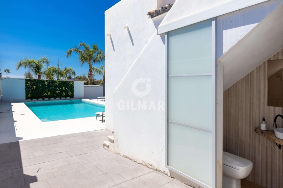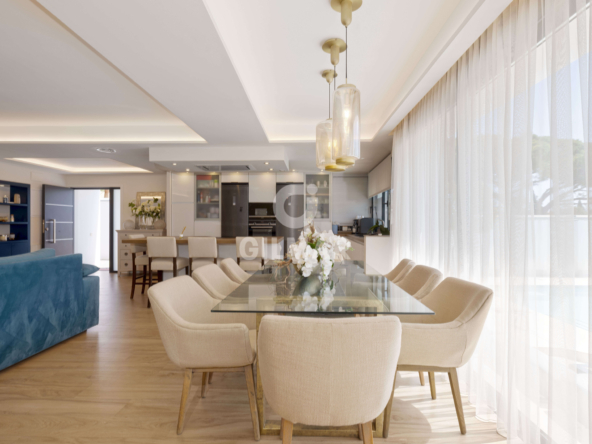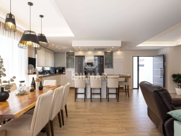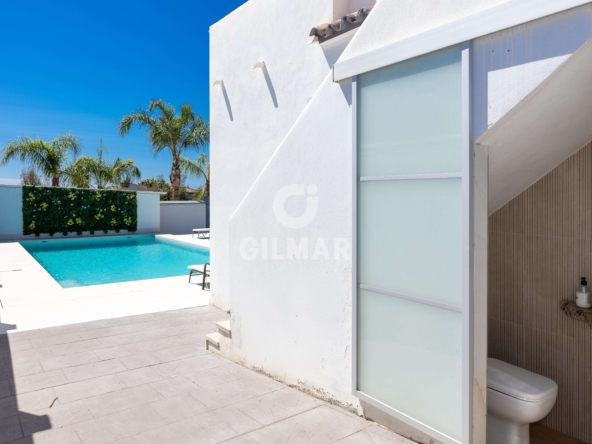 The property has 5 bedrooms, 5 bathrooms and 2 living rooms with an open-plan kitchen that can be integrated or separated thanks to a retractable wall, adapting to your needs. One of the bedrooms, with an en-suite bathroom, has a separate entrance, offering additional privacy for guests or service staff. Outside, you will find a toilet for the pool area, a large barbecue area and a garden to enjoy the exceptional climate of the Costa del Sol. On the upper floor, a small terrace offers partial sea views, a perfect spot to relax at the end of the day.