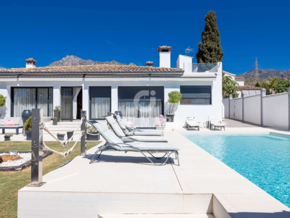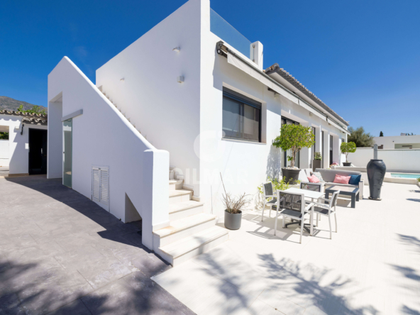 Located in one of the most prestigious areas of Marbella Town, this detached villa of 236 m² built on a plot of 800 m² stands out for its elegance, functionality and south-facing orientation, which guarantees light throughout the day. Its single-storey design makes it a comfortable and practical option, ideal for families looking for space and comfort.