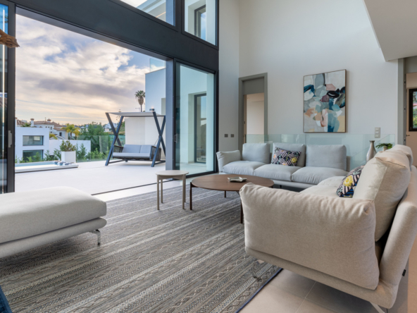 This stunning villa is in the prestigious gated community of Lomas de La Quinta, Marbella. With panoramic views of the Mediterranean Sea and the Sierra de las Nieves mountain range, the property combines luxury, privacy, and comfort. Its modern architectural design, accompanied by a natural setting of unparalleled beauty, makes it the perfect choice for those seeking the very best in lifestyle and comfort.