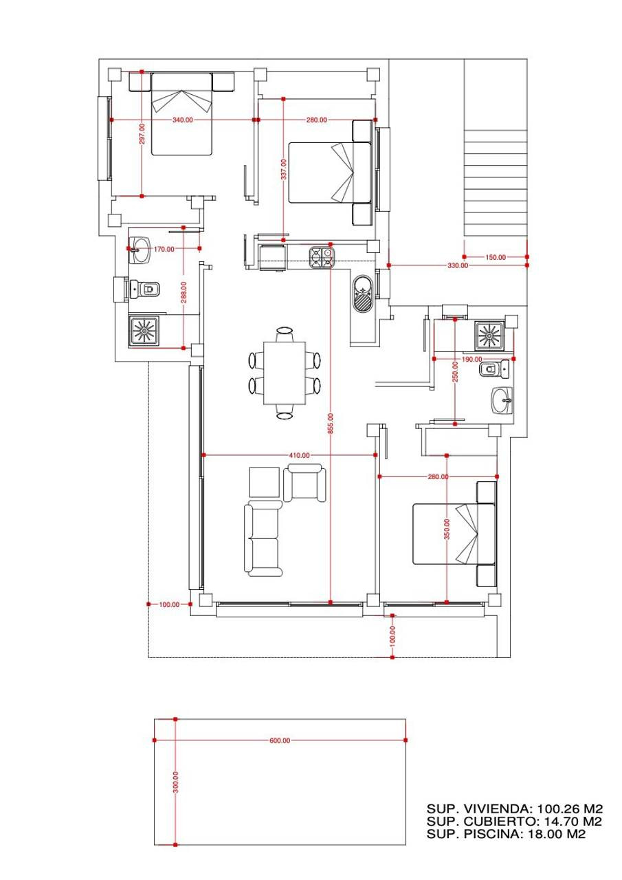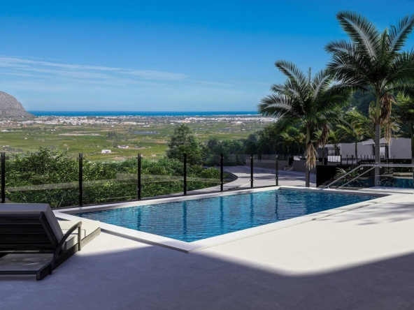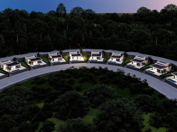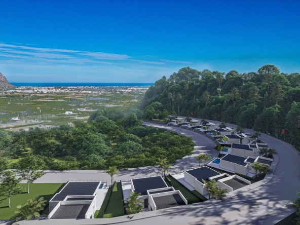 3 bedroom – 2 bathroom – Build 115 m2 – Plot 299 m2 Well priced modern new construction villas to be completed in late 2025 located in the popular Monte Solana urbanisation. The modern properties will have a double carport entrance leading down to Stairs or an external lift (Chargeable extra) to the principle living areas that are all distributed across one level. All 10 villas will have three bedrooms complete with integrated wardrobes two full bathrooms with modern fittings and one of which is en-suite. The modern open plan living and dining areas will give an open feeling and large sliding doors lead out onto the private pool and terrace areas. The pools will be preinstalled for heating. The properties will be heated by ducted air conditioning units powered by a Panasonic reverse heatpump. These villas are an excellent price point and can qualify for Spains golden visa program. Some of the villas will have sea views as an addition to all the properties having nice open views. The location is close to the town of Pedreguer, whilst the city of Denia, with its large marina, beaches and daily ferry service to the Islands of Ibiza, Formentera and Mallorca is only a 15 minute drive by car.
